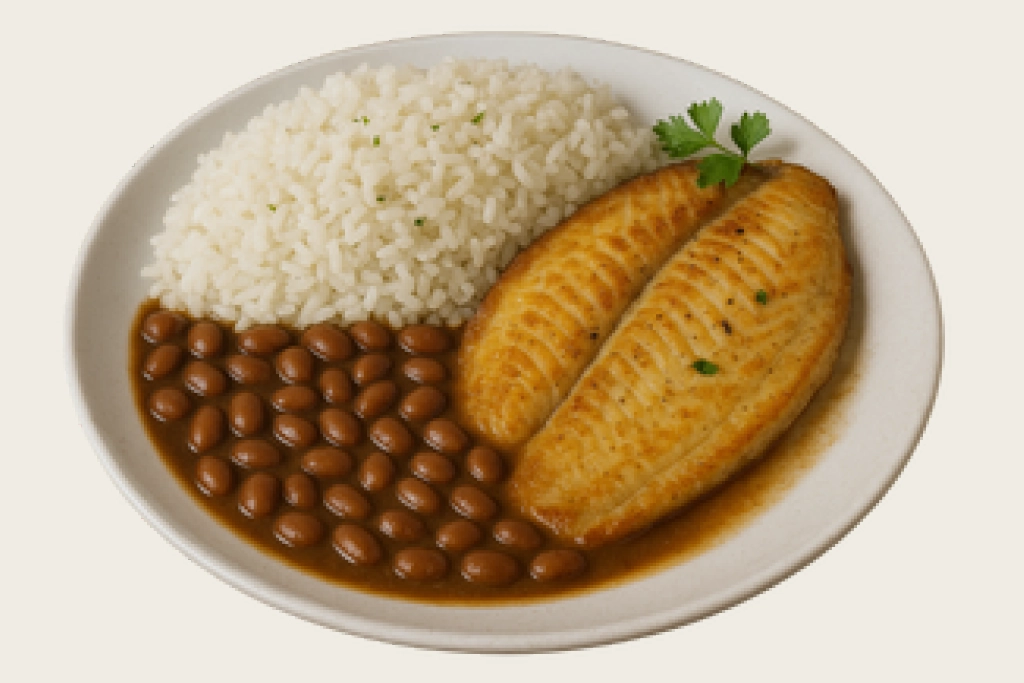 Saint Peter, com arroz e feijão